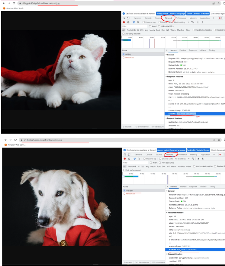 이후 다시 S3에 객체를 업로드하면 새롭게 생성된 객체가 Cloudfront에서 보이게 된다