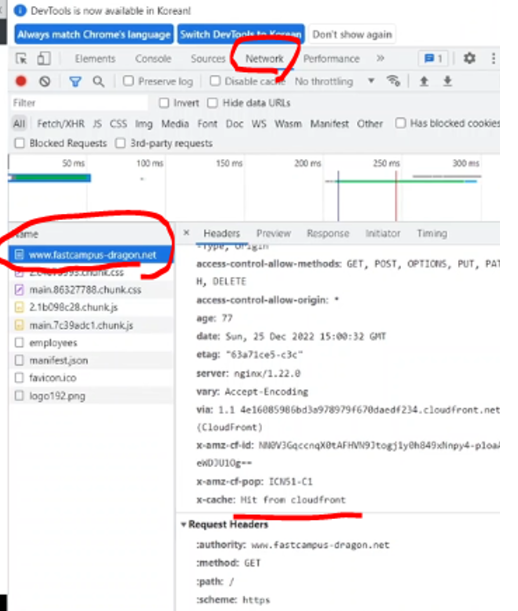 호스트 헤더 역시 www.fastcampus-dragon.net header로 들어오는 놈들은 싹 다 Cloudfront에서 이미 걸러진 놈들이므로 ALB에서는 그대로 어서오시오-가시오 느낌으로 Frontend(Nginx)로 넘겨주도록 해주자