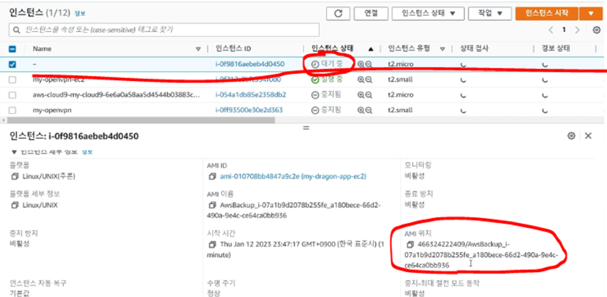 이렇게 Backup을 하나 생성해두면 그 즉시 EC2의 AMI가 아래와 같이 하나(백업본) 생성이 되게 된다