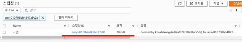 또한 아래와 같이 이러한 AMI가 생성이 되게 되면서 이 EC2 Instance에 대한 EBS Snapshot 역시 하나 새롭게 생성이 되게 된다