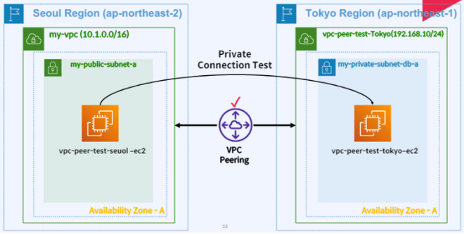 이후 이 Tokyo Region에서 Seoul Region의 VPC ID를 통해서 VPC Peering을 생성해준 후 Seoul Region에서 수락해준다.