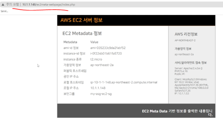 TG을 생성해두자(my-asg-ec2-tg-80). 이때 State check PATH는 /ec2meta-wbpage/index.php(내 local web browser로 정상 동작 확인한 PATH)로 설정하고 내가 생성했던 my-asg-ec2를 포함시키자.