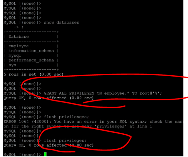 그 후 mysql의 root 계정에 대한 외부 접속 권한 부여를 위해서 아래와 같이 GRANT 작업을 해주자