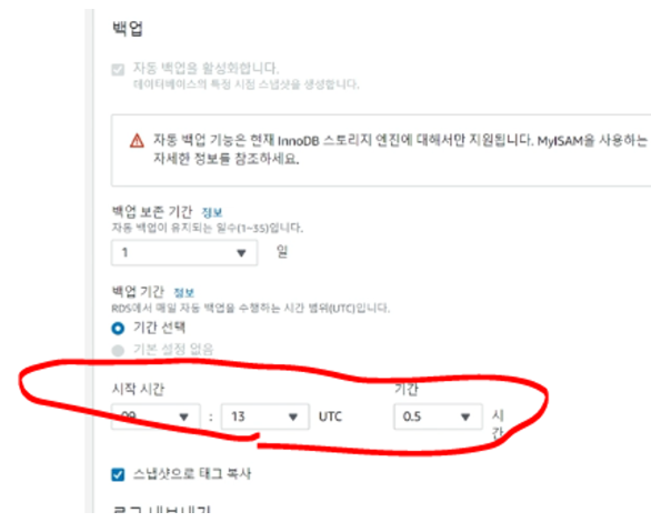 또한 RDS 백업을 진행할때는 백업 시간이 현재 시간과 너무 가깝진 않은지 판단한 후 가까우면(가까우면 백업이 실패가 난다) RDS에 대한 백업 시간을 아래와 같이 바꿔주도록 해보자