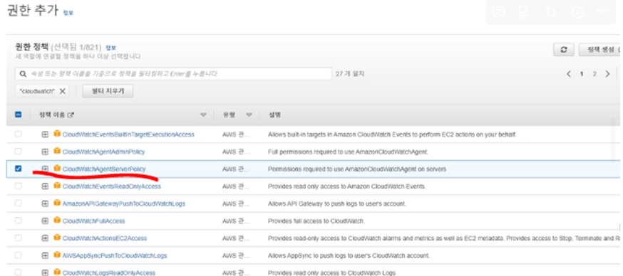 이제 이러한 CloudWatch Agent의 Metric 정보들을 CloudWatch로 쏠 수 있도록 Agent가 돌아가고 있는 EC2에 할당할 IAM role을 아래와 같이 만들어두자