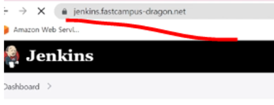 아래와 같이 내가 설정해둔 jenkins 도메인 record로 진입시 jenkins로 들어갈 수 있는 것을 확인하자.