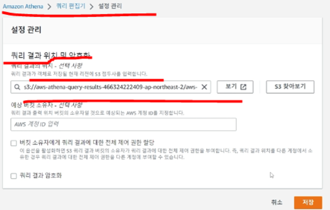 쿼리를 진행하기 전에 먼저 쿼리가 저장될 S3 위치부터 설정을 해줘야 하므로 아래와 같이 그 위치를 설정해주자