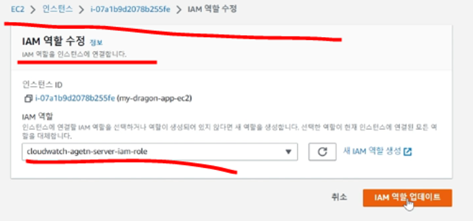 이후 해당 EC2에서 IAM 역할을 아래와 같이 지금 만든 IAM role로 수정해주자