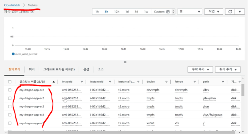 CloudWatch Agent와 CloudWatch는 자동적으로 연결이 되어 있으므로 이렇게 IAM role 설정만 완료하면 이제 CloudWatch에서 Metric 정보들을 볼 수 있게 된다