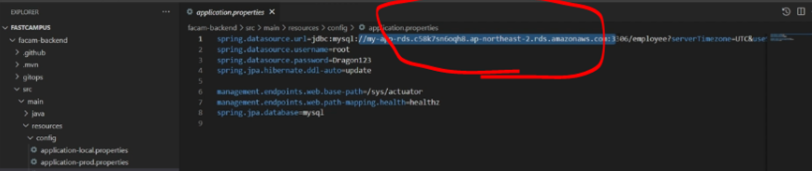 SpringBoot Project의 application.properties(Web App Configuration)에 내가 생성한 RDS의 endpoint를 아래와 같이 입력해주면 된다