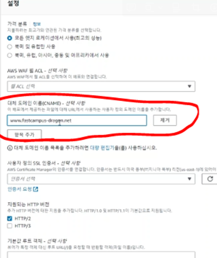 이제 Cloudfront를 만들어보자. Origin은 당연하게 내 ALB를 선택을 해주자
