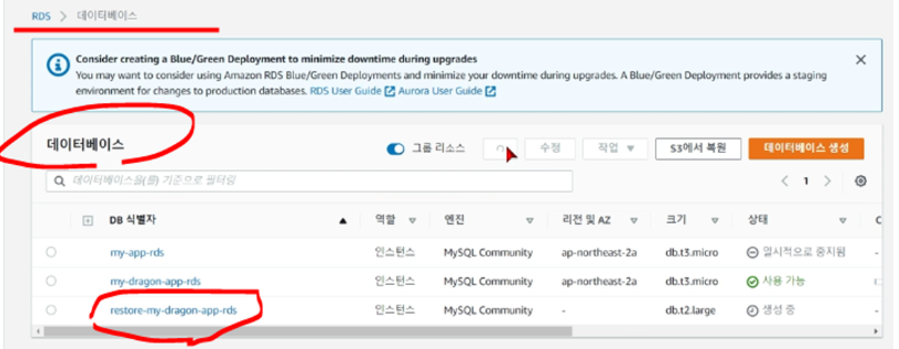 그 후 아래와 같이 복원해 놓은 EC2에서 다시 복원한 RDS로 접근하도록 해보자.