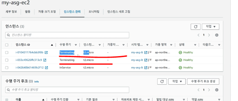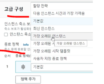 또한 아래와 같이 해당 ASG의 고급 구성에서 종료 정책으로 Scale In이 될때 어떤 인스턴스부터 먼저 Terminating을 시킬지도 정할 수 있다. Default는 가장 오래된 인스턴스부터 지우는 것이다.