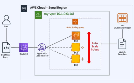EC2를 만들고 이걸로 AMI를 만들어서 Launch template을 만든 후 ASG를 만들어서 그 앞에 ALB를 붙이도록 한다. 실습 환경은 그대로 기존에 VPC 세팅했던거 재사용한다.