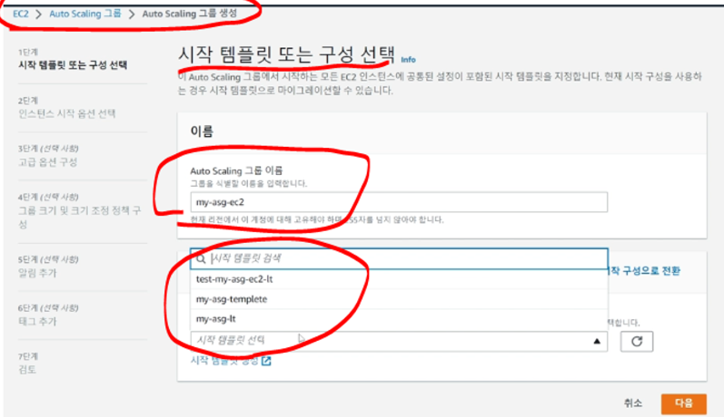 이제 ASG를 만들어서 설정해두자. 시작 template은 앞서 만들어뒀던 template으로 설정해두자.