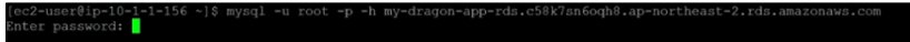 이후 ec2로 ssh 접속을 한 후 아래와 같이 mysql url로 DB url(=endpoint)로 들어가자.