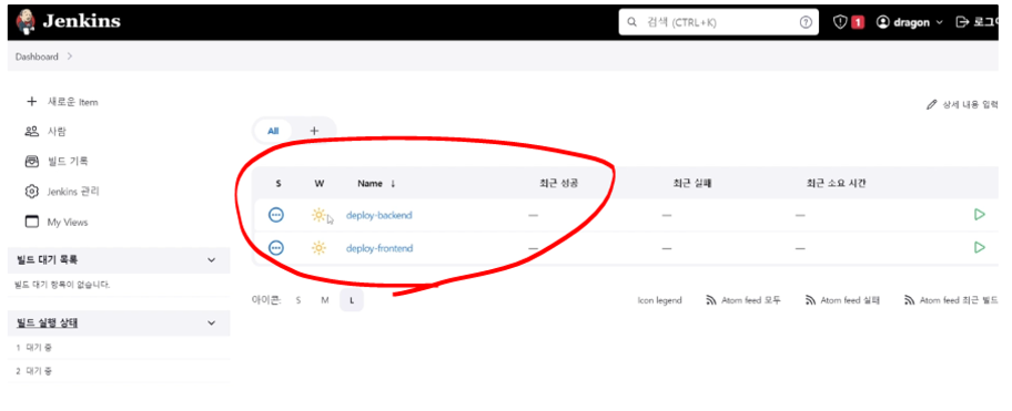 그리고 나서 이제 Jenkins에 생성된 두 Pipeline을 빌드(frontend-pipeline은 Jenkins가 npm run build부터 Ansible 배포까지 진행됨; backend-pipeline은 maven build부터 Ansible 배포까지 진행됨) 시켜주자.
