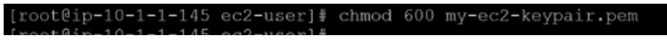 이후 바스쳔 호스트에 putty로 ppk key를 이용해서 내 local에서 접속한 후 다시 여기서 ssh로 pem key를 이용해서 private ec2로 접속하기 위해 pem key 권한을 chmod 600으로 축소해준 다음에 ssh 접속해주자.