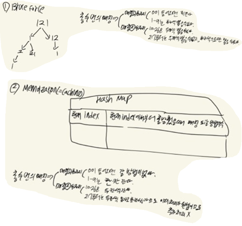 - Memoization(=Caching) = Backtracking(=dfs)(Base Case → Cache Hit → 내려가기 → 올라왔을때)