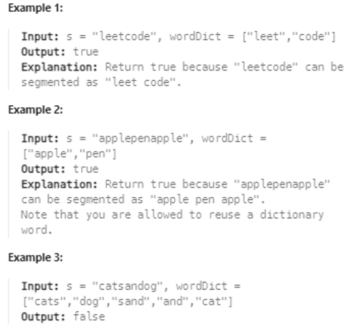 s에 들어있는 string이 wordDict의 substring으로 쪼개지는지 확인하라