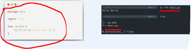 위의 오른쪽에서 tree구조를 보게 되면 go.mod라는 module을 관리하는 text file과 main.go를 볼 수 있게 된다.
