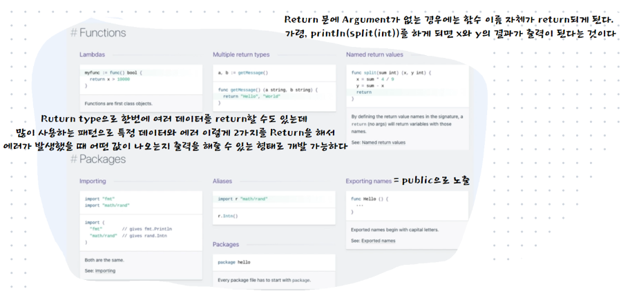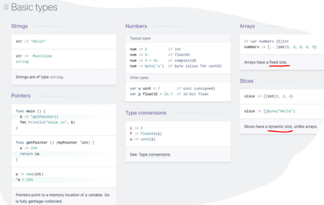 자 이제 본격적으로 Golang 문법에 대해 살펴보기 위해 Golang 공식 문서에서 제공하는 Golang Cheat Sheet을 봐보도록 하자. 지금부터 나올 문법 관련 그림들을 눈에 익혀서 이해하기만 하자.