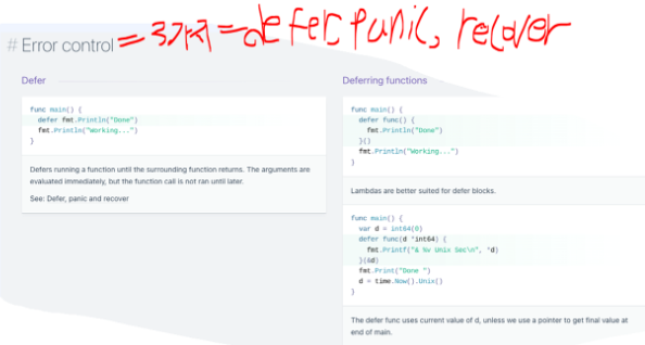 defer 키워드는 특정 문장 혹은 함수를 나중에 실행하게 하는 Java의 finally 블럭처럼 마지막에 Clean-up 작업을 위해 사용. 가령, 어떤 에러가 발생하더라도 항상 파일을 Close하거나 Thread를 반환하도록 할때 사용.